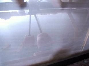A chaque travée de la bluterie correspond une sortie pour les diverses issues : la farine coule la première des gazes les plus fines, coulent ensuite les gruaux, le son s'écoule à la sortie du blutoir.