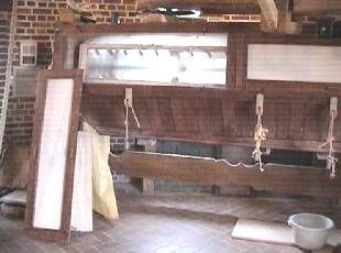 La bluterie est un grand coffre contenant un long tambour hexagonal légèrement incliné, sur les arêtes duquel sont tendues des soies au tissage plus ou moins serré. Ces soies sont maintenues tendues par quatre hexagones reliés par des rayons métalliques à l'axe du tambour qui reçoit indirectement son mouvement de rotation lente d'un ensemble de courroies, axes, et engrenages relié à l'arbre du hérisson de l'étage des meules.